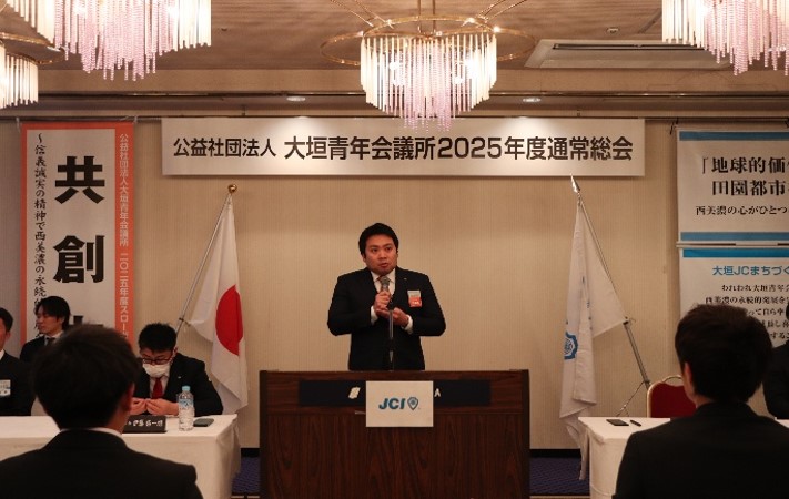この通常総会で2024年度が締め括られ、2025年度にバトンが渡されました。2025年度、大垣青年会議所が掲げるスローガン「共創力~信義誠実の精神で西美濃の永続的発展を実現する~ 」のもと明るい豊かな社会の実現に邁進して参ります。また、通常総会後の懇親会も開催し、会員拡大特別会議の会員が拡大のプレゼンを行い、拡大の目的や大切さを再確認でき会員同士の交流をはかることが出来ました。